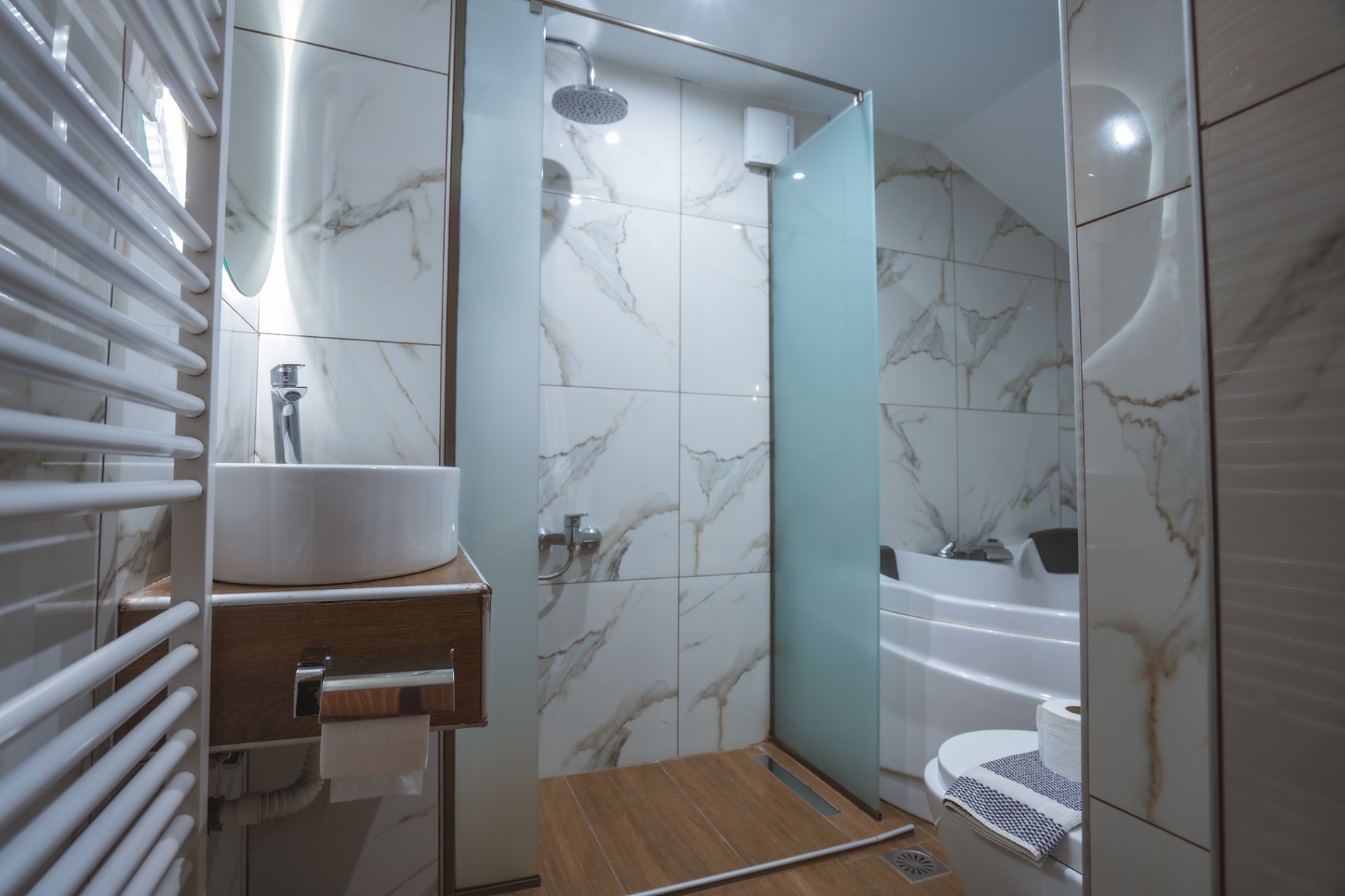 - Κομψό μπάνιο με μεγάλη μπανιέρα